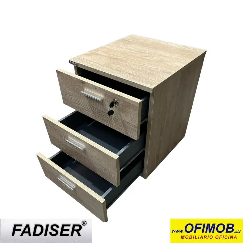 Cajoneras Escritorio 3 Cajones roble + cerradura para Oficina: Organización y Elegancia