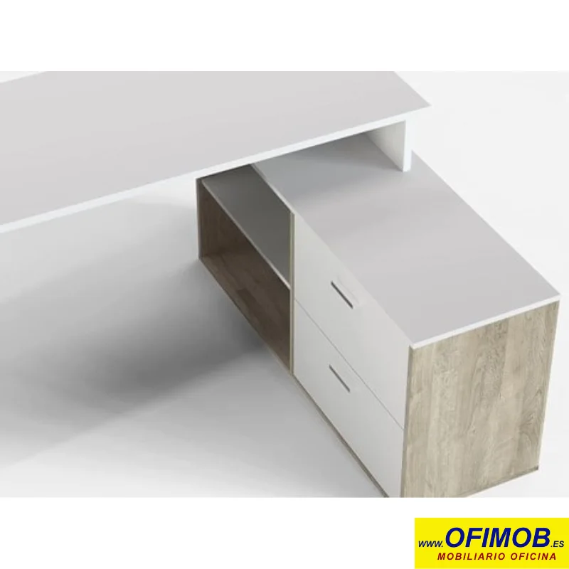 - Blanco y Roble Claro: Una combinación armoniosa que ofrece un aspecto moderno y fresco, ideal para iluminar y revitalizar cualquier espacio de trabajo.