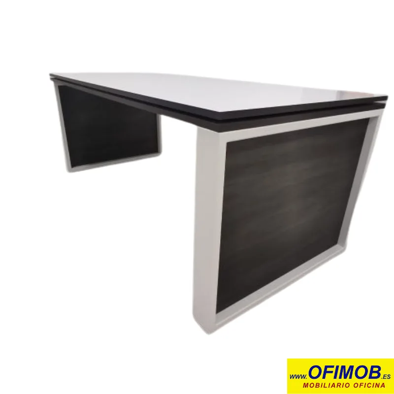 El diseño geométrico de las patas metálicas proporciona una estabilidad robusta a la mesa, mientras que su aspecto moderno y vanguardista la convierte en una pieza de mobiliario que destaca en cualquier entorno. La superficie amplia ofrece espacio suficiente para acomodar computadoras, documentos y otros elementos esenciales del trabajo, facilitando reuniones productivas y colaborativas.